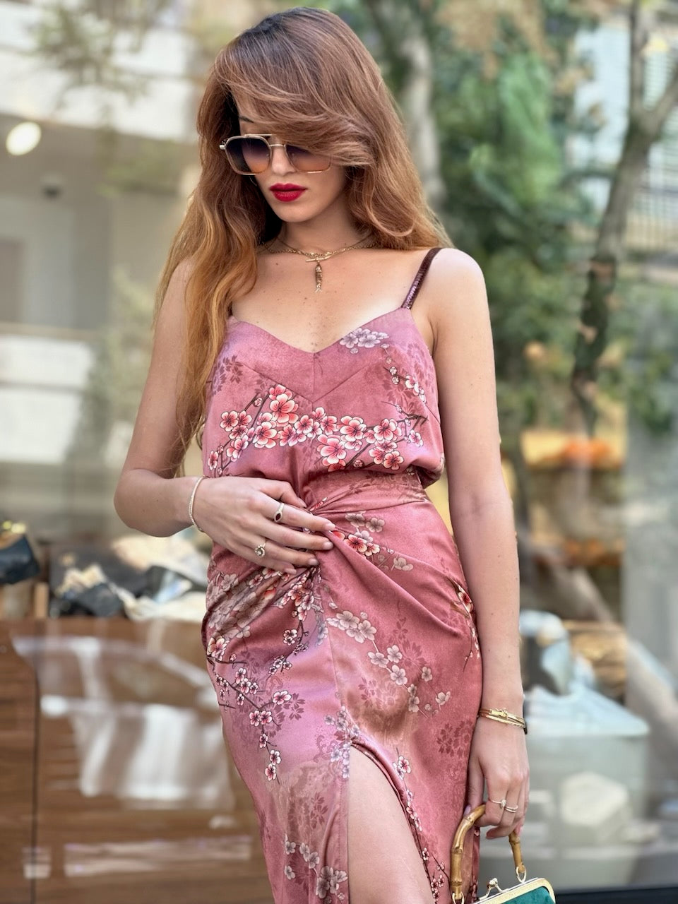 בדי סאטן רכים נעימים וקלילים בפרינטים קיציים בצבעים חלומיים. עם רוכסן צד, גומי מאחור, וקשירה אחורית לאפשרות הקטנה נוספת בהיקף המותן.