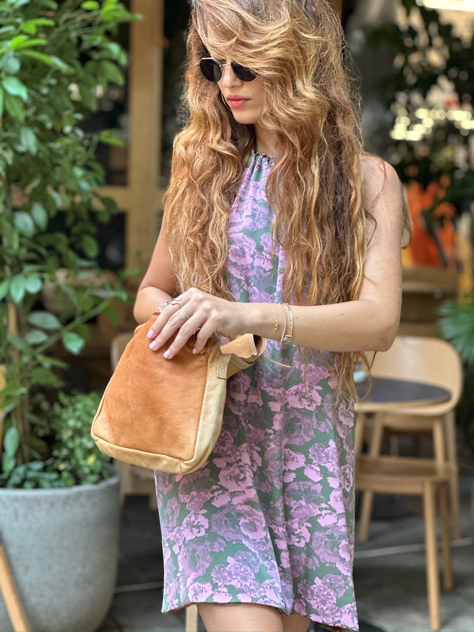 שמלת אליס -ירוק ורוד 70s (מוקה ורוד)