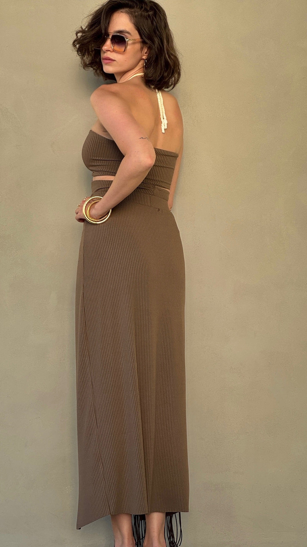 חצאית מבד ריב בייסיק נמתח ונשפך. באורך קרסול.