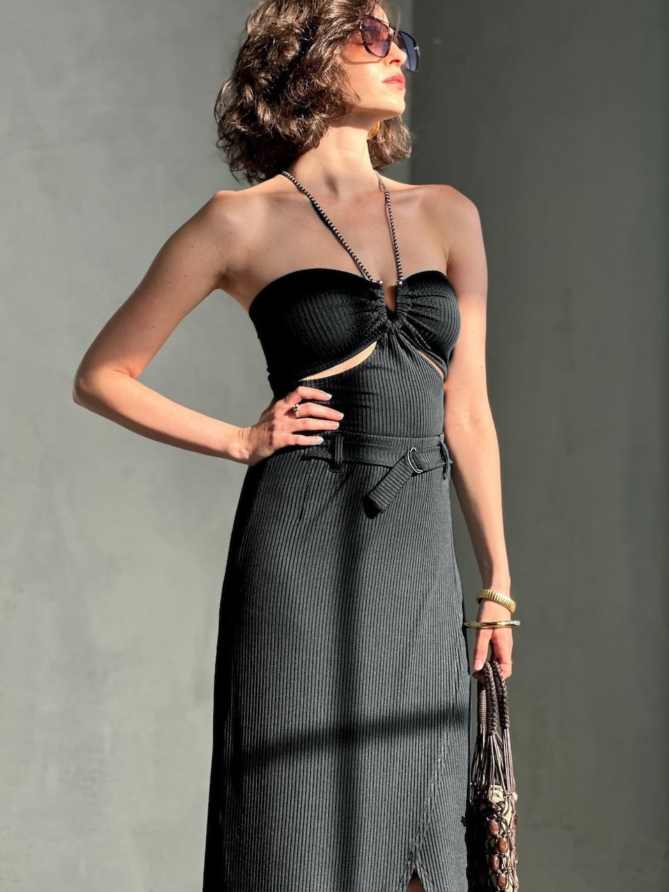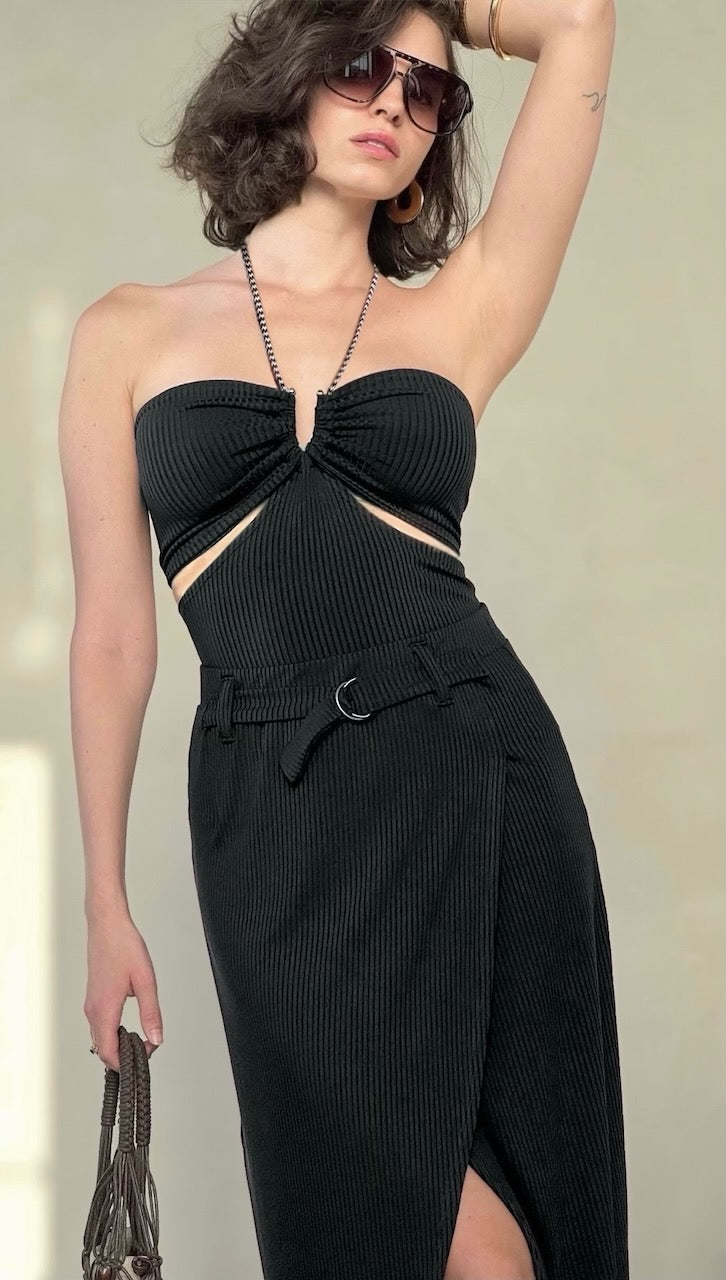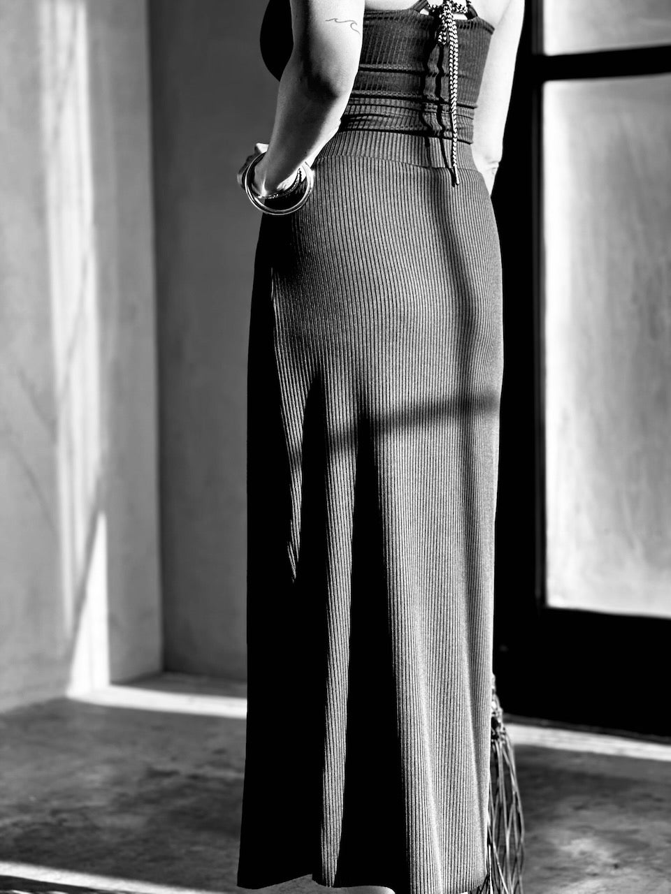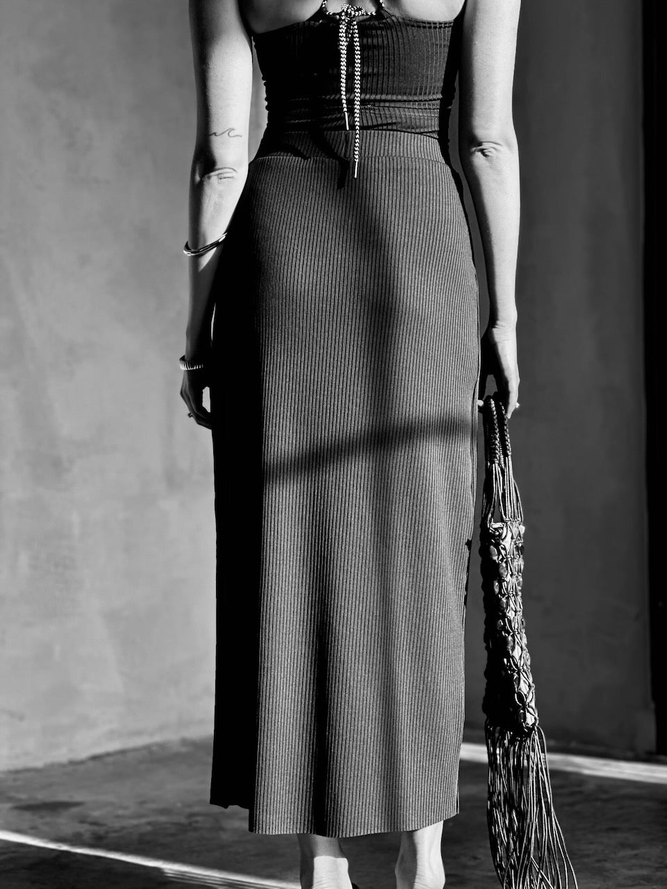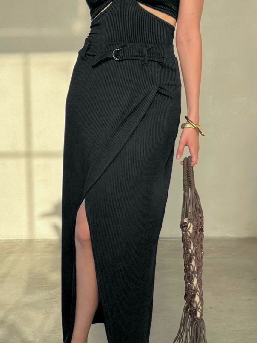 חצאית מבד ריב בייסיק נמתח ונשפך. באורך קרסול.