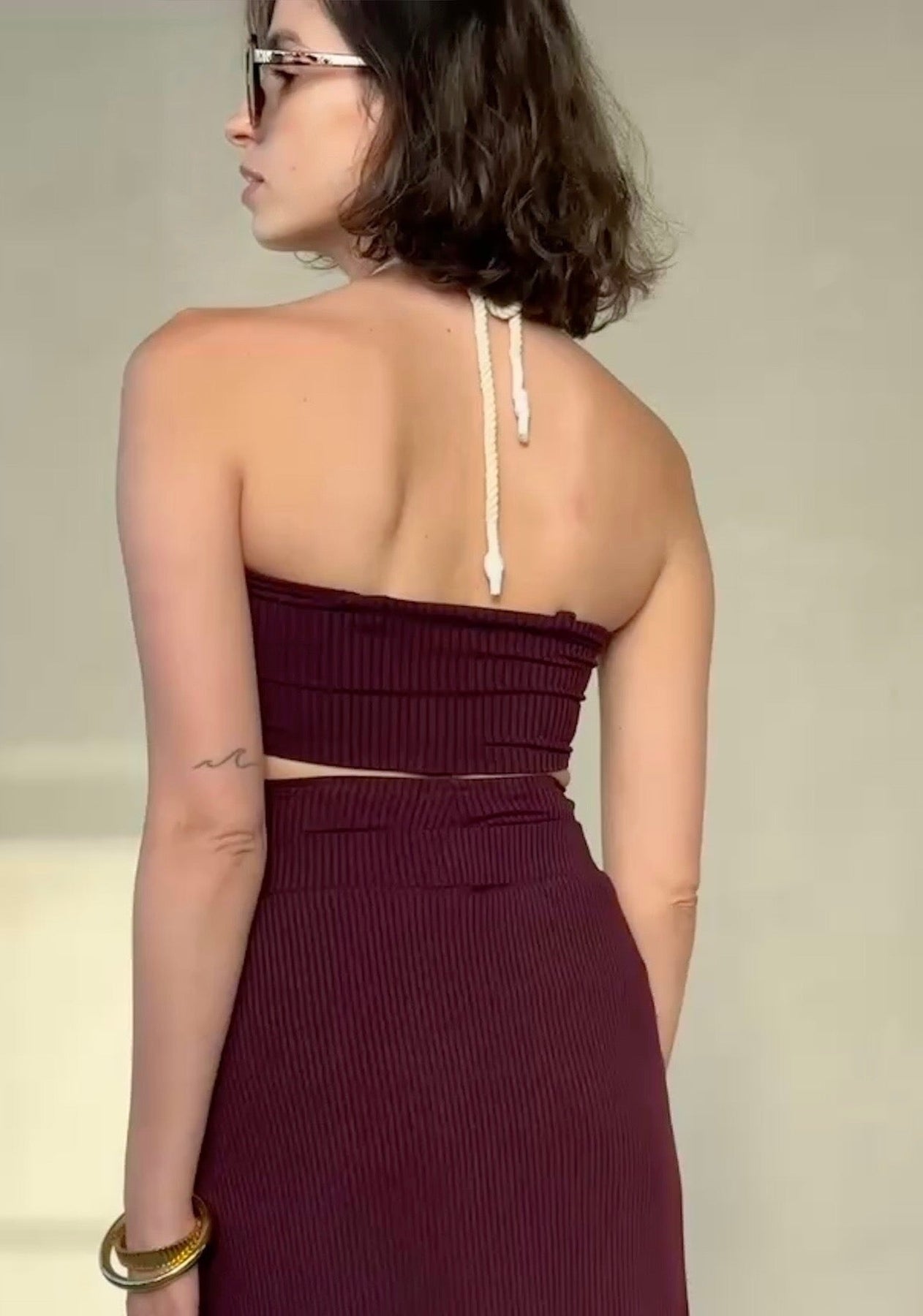 הטופ מגיע עם שרוך קשירה שניתן לקשור במספר דרכים: