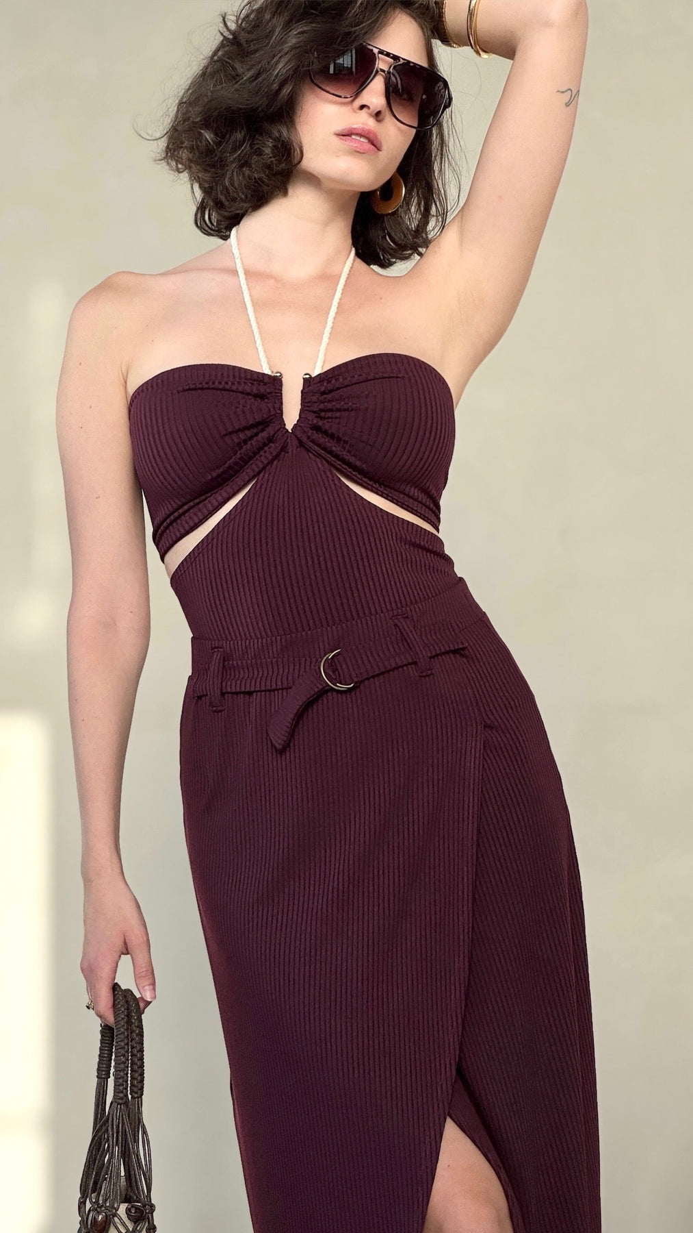 הטופ חתוך כך שחושף פתחים עדינים באיזור הצלעות ולרוחב הגב.