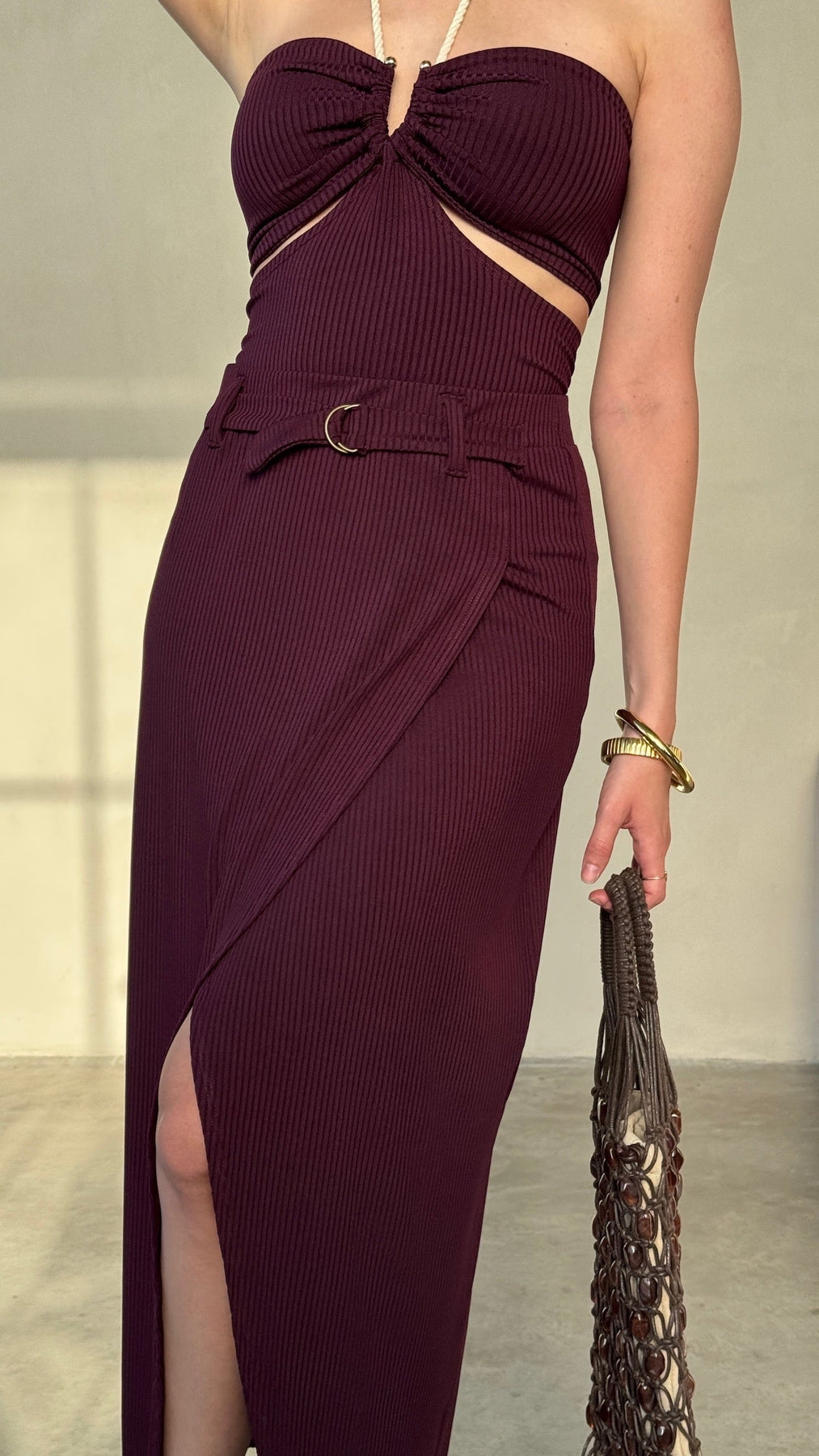 חצאית מבד ריב בייסיק נמתח ונשפך. באורך קרסול.