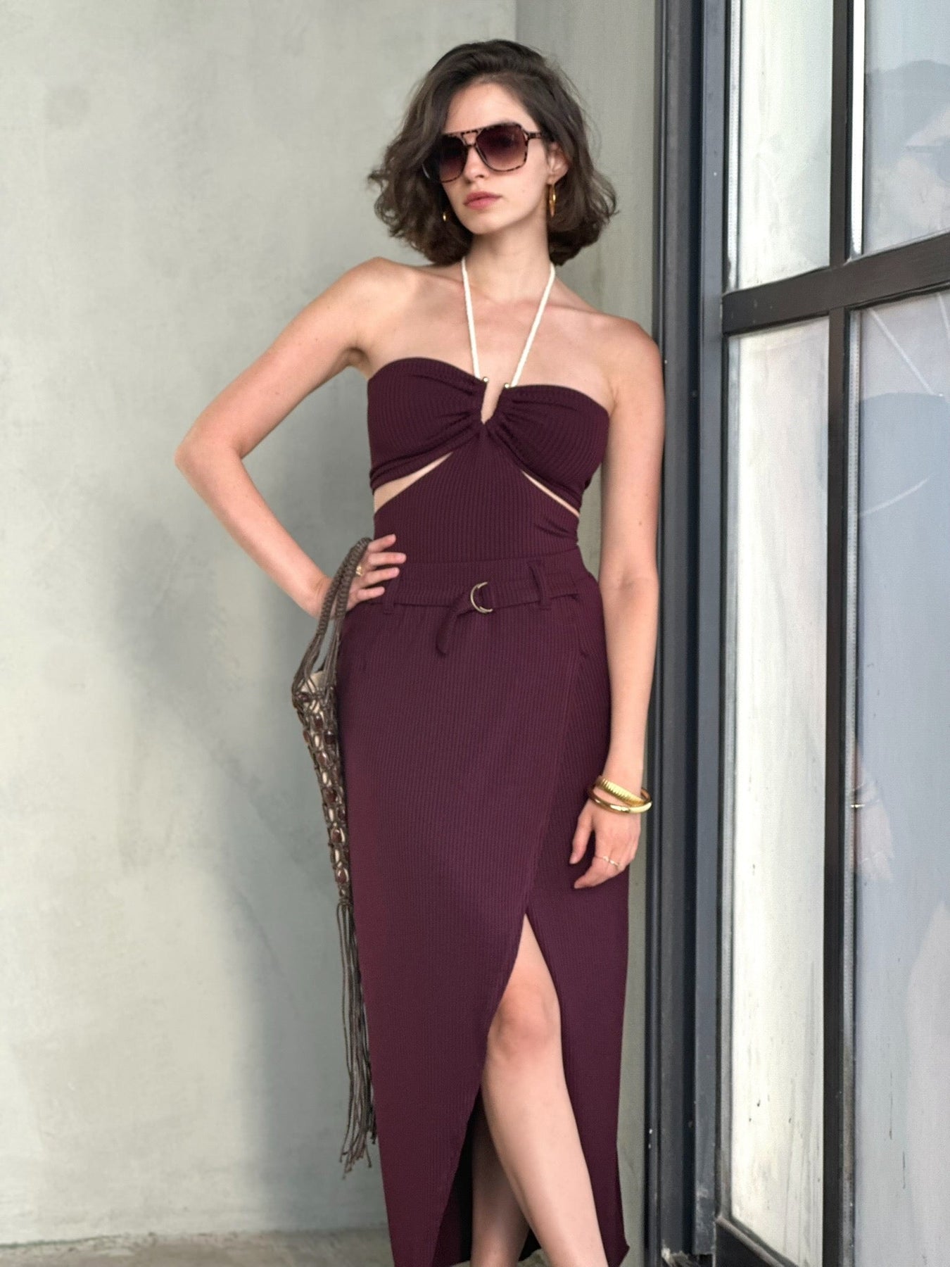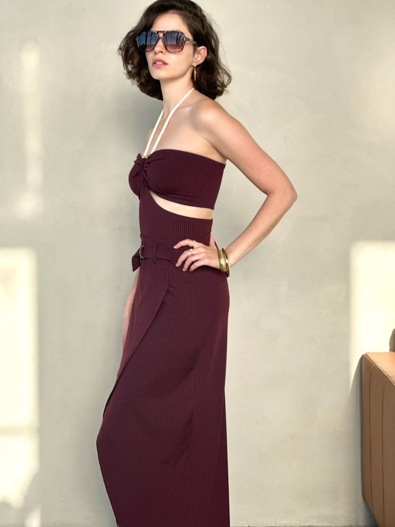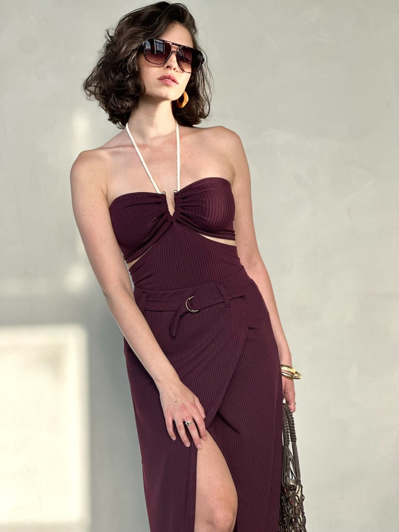 הטופ חתוך כך שחושף פתחים עדינים באיזור הצלעות ולרוחב הגב.