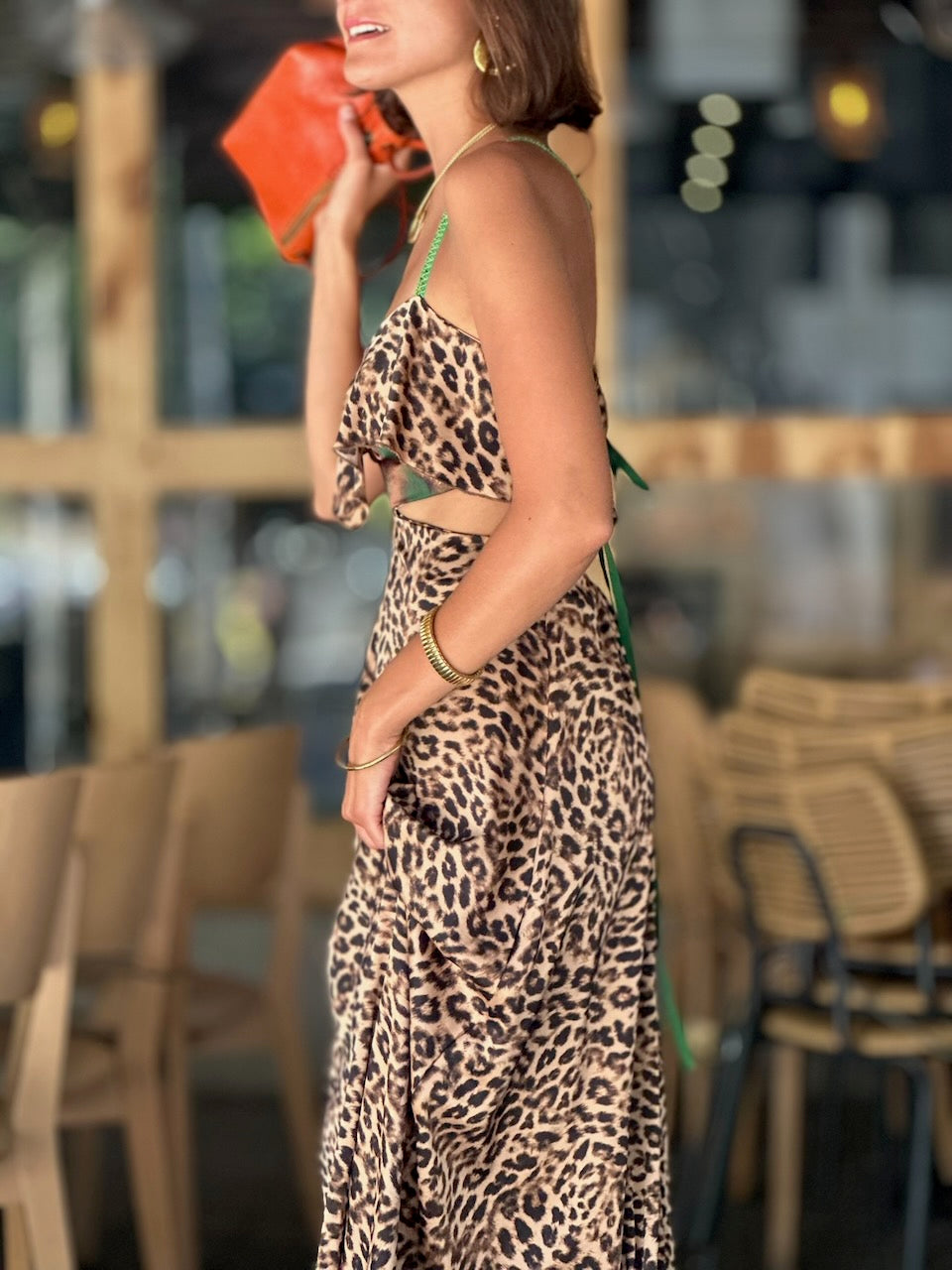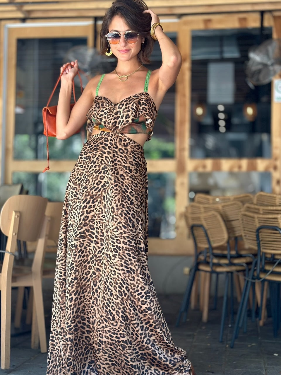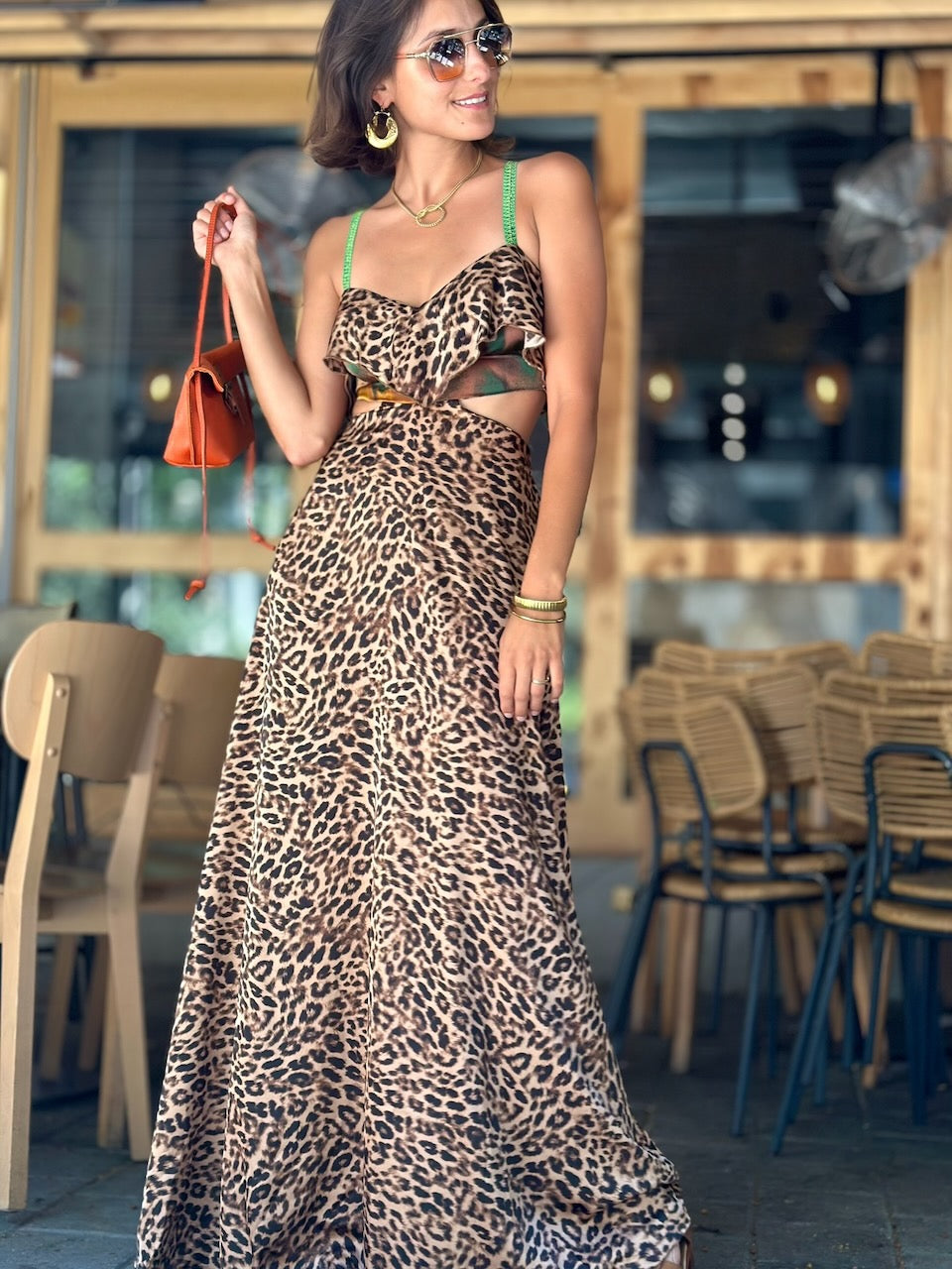 שמלת מקסי בגזרה נשית וסקסית החושפת מעט את צידיי הצלעות. מפתח v עם וולן בחלקה העליון - שיוצר מראה מחמיא במיוחד ומתאים לחזה קטן וגדול.