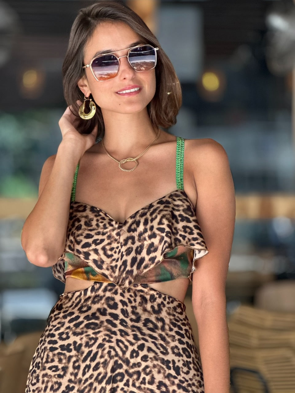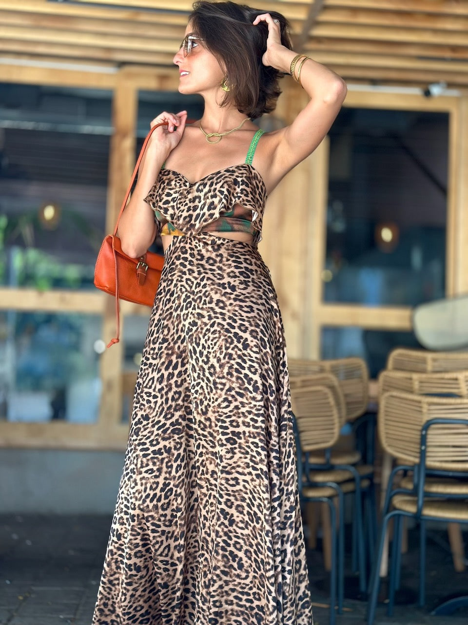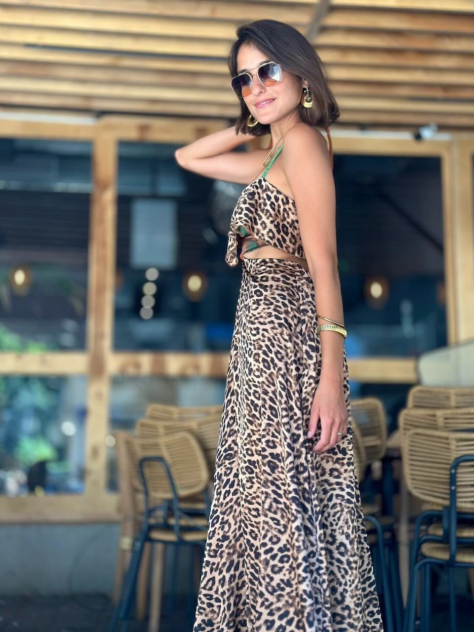 שמלת מקסי בגזרה נשית וסקסית החושפת מעט את צידיי הצלעות. מפתח v עם וולן בחלקה העליון - שיוצר מראה מחמיא במיוחד ומתאים לחזה קטן וגדול.
